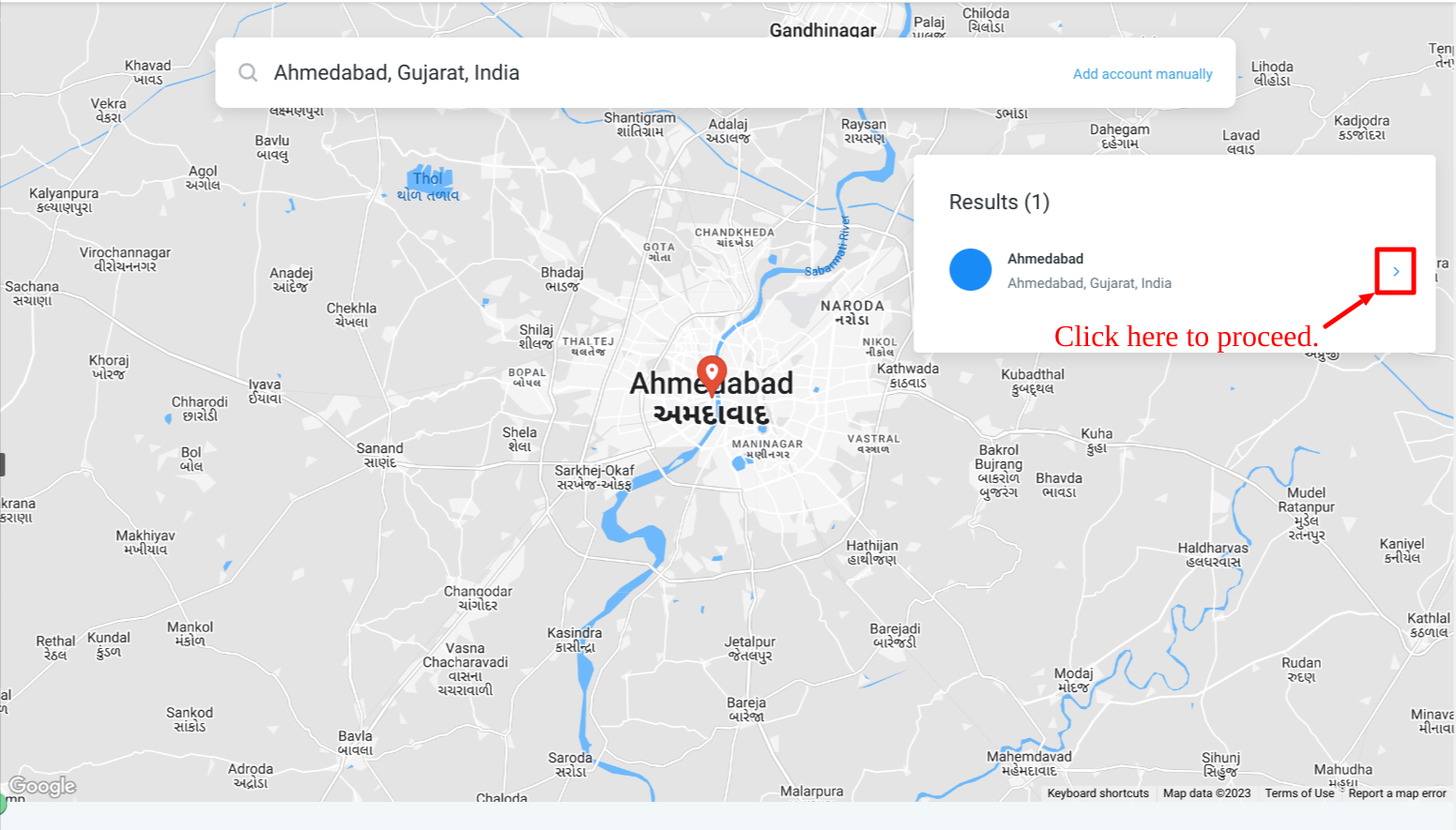 Then, it will open a screen with a map like below. You need to select your location and then continue with your selected location by clicking the arrow.