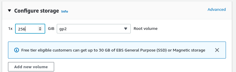 You can modify the root volume settings or you can add a new volume if required.