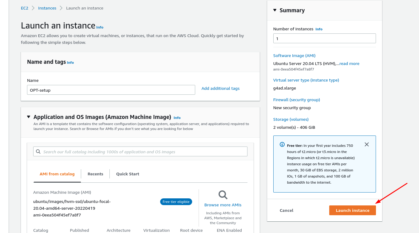In this step, we will review all our choices and parameters and go ahead to launch our instance by clicking on “Launch Instance”.