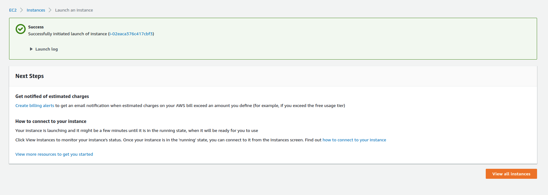 You will see a status like your instance is launching, like below.