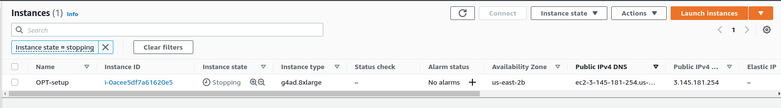 As you click on “View all instances”, you are able to see the list of all available instances.