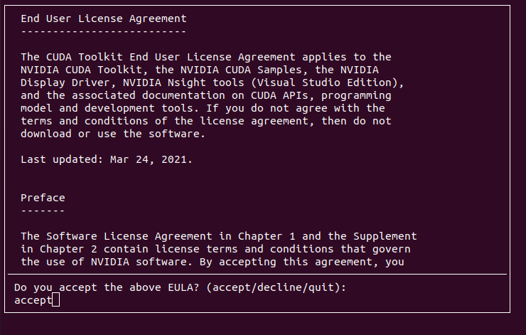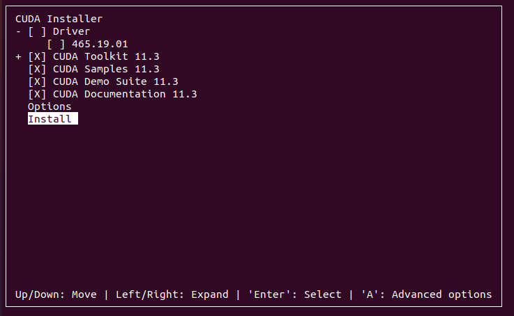 sudo sh cuda_11.3.0_465.19.01_linux.run